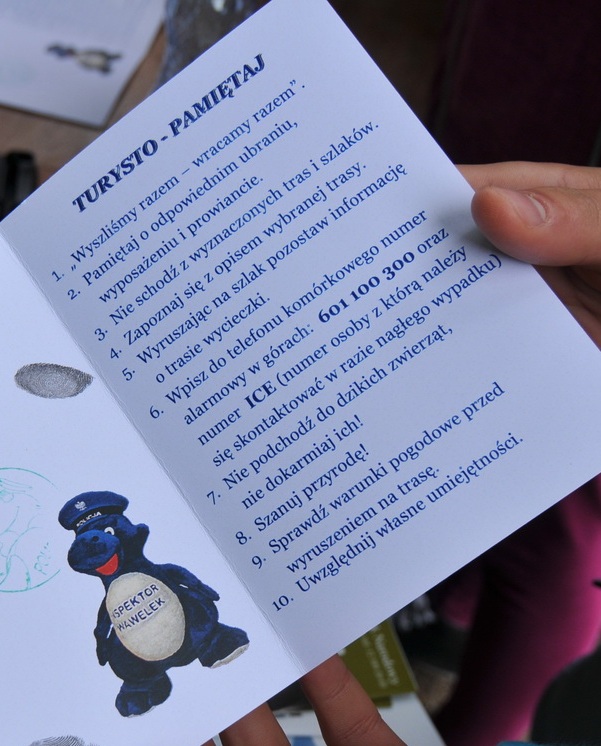 Policjanci Wydziału Prewencji Komendy Wojewódzkiej Policji w Krakowie zorganizowali kolejną akcję prewencyjną adresowaną do turystów. Miejscem spotkania był Ojcowski Park Narodowy. Policjanci, wspólnie z funkcjonariuszami Straży Parku opowiadali o tym, jak bezpiecznie poruszać się po szlakach turystycznych, aby uniknąć niebezpieczeństw. Dla osób odwiedzających policyjne stoisko przygotowane zostały materiały informacyjne, a dla najmłodszych uczestników spotkania „Paszporty Bezpiecznego Turysty", na których można było złożyć własne odciski palców.