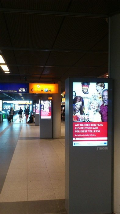 W jednym z najnowocześniejszych dworców kolejowych na świecie – berlińskim dworcu głównym (Hauptbahnhof) oraz na dworcach Ostbahnhof i Ostkreuz – umieszczone zostały plakaty z napisem „Dziękujemy kibicom z Niemiec za te wspaniałe mistrzostwa. Do szybkiego ponownego zobaczenia w Polsce."