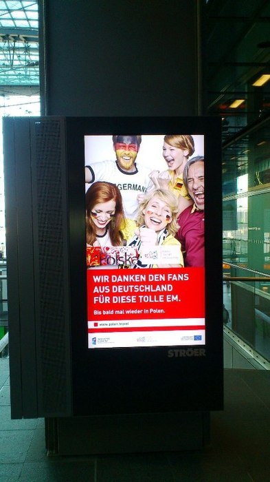 Tuż po zakończeniu czternastego turnieju o Mistrzostwo Europy w piłce nożnej mężczyzn UEFA EURO 2012TM, który został zorganizowany wspólnie przez Polskę i Ukrainę, berliński ośrodek Polskiej Organizacji Turystycznej postanowił podziękować niemieckim kibicom za liczny udział w tej imprezie. Akcja rozpoczęta została już w pierwszym dniu po zakończeniu ME, punktualnie o godz. 6.00 rano. Potrwa ona do niedzieli 8 lipca. POIT Berlin spodziewa się, iż przesłanie dotrze do ok. 3 mln osób.