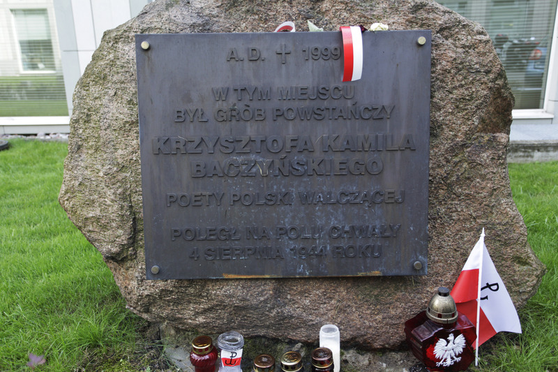 Tablica upamiętniająca śmierć tego wybitnego, młodego poety-żołnierza została wmurowana w latach 50. we frontową ścianę Pałacu. Ponadto w holu głównym znajduje się popiersie Baczyńskiego oraz kolejna tablica pamiątkowa.