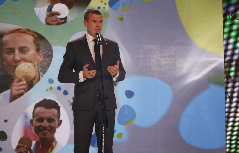 Dziś wspominamy wspaniałe chwile, łzy wzruszenia i radość. To był piękny czas dla Polski. Nasze zawodniczki i zawodnicy dostarczyli nam mnóstwo pozytywnych emocji. Wszyscy jednoczyliśmy się, by kibicować naszym reprezentantom, a nasze serca były biało-czerwone. Sukces to jednak nie tylko euforia. To także pot, łzy, momenty zwątpienia. Każdy z naszych mistrzów przeżywa także i te trudne chwile. Ale miarą sportowca jest nie to jak triumfuje, ale to jak wstaje z kolan. Udowadniacie, że warto jest być przykładem dla innych. – powiedział podczas wystąpienia Minister Sportu i Turystyki Witold Bańka.
