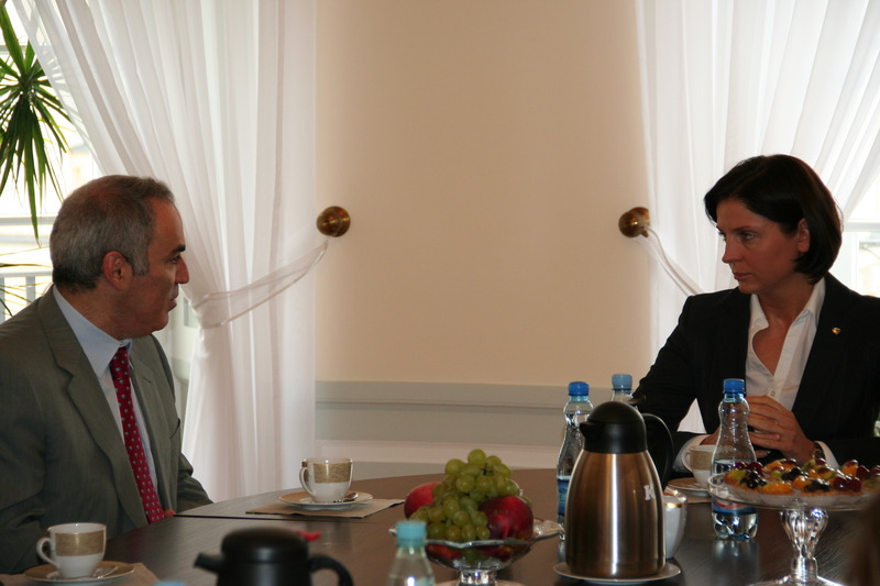 Joanna Mucha, Minister Sportu i Turystyki spotkała się z Garri Kasparowem, wielokrotnym mistrzem świata w szachach.