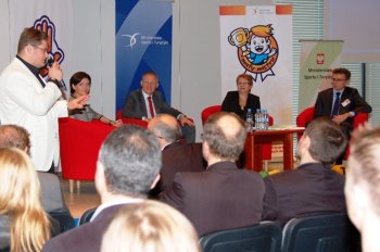 Zofia Klepacka - brązowa medalistka Igrzysk Olimpijskich w Londynie, mistrzyni i dwukrotna wicemistrzyni świata w klasie RSX, Paweł Fajdek - złoty medalista mistrzostw świata w rzucie młotem, Mariusz Jurkiewicz – reprezentant Polski w piłce ręcznej, brązowy medalista mistrzostw świata z 2009 r. - Ambasadorzy projektu Mały Mistrz - opowiedzieli jak wyglądał ich wf w szkole i dlaczego tak ważne są ciekawie prowadzone zajęcia fizyczne z najmłodszymi uczniami. Zgodnie podkreślali, że pierwszy kontakt z wf-em może stać się dla młodego człowieka impulsem do kontynuowania sportowych zainteresowań. Sportowcy dzielili się swoimi doświadczeniami podczas konferencji poświęconej projektowi Mały Mistrz. Honorowym Patronem Projektu został mistrz olimpijski – Władysław Kozakiewicz.