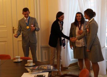 Artur Pióro, Edyta Zaręba i Natalia Brzykcy, medaliści XXII Letnich Igrzysk Głuchych wraz ze swoimi trenerami i działaczami Polskiego Związku Sportu Niesłyszących, byli gośćmi Minister Sportu i Turystki Joanny Muchy. Pani minister w trakcie spotkania pogratulowała zawodnikom sukcesów i zdobytych medali. W trakcie rozmowy poruszono także wątki związane z kondycją związku oraz szerzej sportu osób niepełnosprawnych.