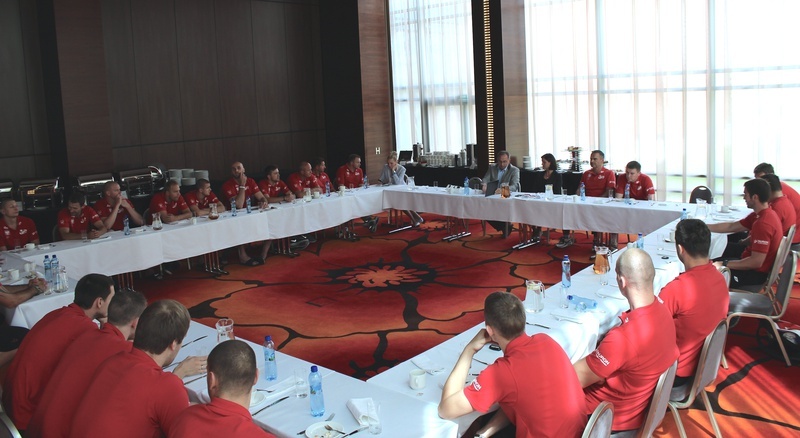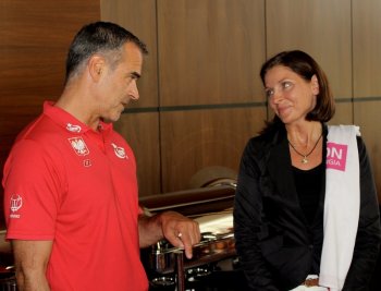 Minister Sportu i Turystyki Joanna Mucha w hotelu Warszawianka w Jachrance odwiedziła reprezentację Polski koszykarzy, która przygotowuje się do EuroBasketu 2013 na Słowenii.