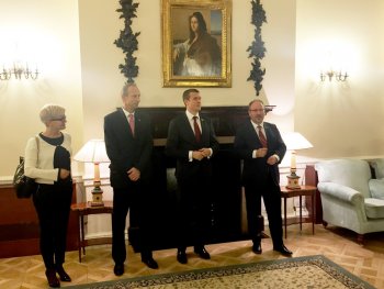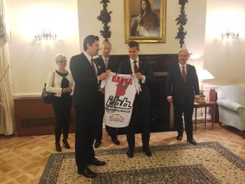 Delegacja Ministerstwa Sportu i Turystyki z Ministrem Sportu i Turystyki Witoldem Bańką na czele rozpoczęła wizytę w Wielkiej Brytanii. Przedstawiciele MSiT zostali powitani przez Ambasadora RP w Londynie dr hab. Arkadego Rzegockiego oraz Dyrektora ZOPOT Pana Cezarego Molskiego. Wieczorem wzięli udział w przyjęciu, zorganizowanym przez Ambasadę RP w Londynie. Minister Sportu i Turystki spotkał się także z przedstawicielami Polonii zaangażowaną w działalność sportową. Wśród zaproszonych byli m.in. zawodnicy klubu siatkarskiego IBB Polonia Volleyball Club oraz młodzi piłkarze.