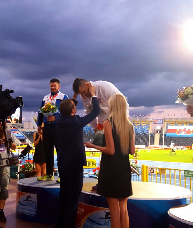 Pierwszego dnia mistrzostw nasz kulomiot Konrad Bukowiecki zdobył złoty medal, a wynikiem 23,34 m ustanowił też nowy rekord świata juniorów. Zwycięzcę konkursu udekorował minister Witold Bańka.