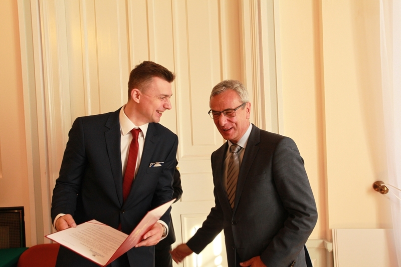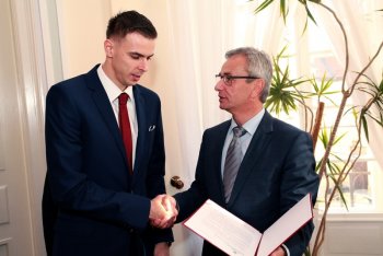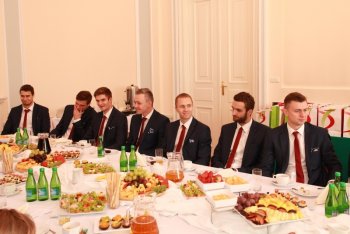 - Jest mi niezmiernie miło gościć naszych siatkarskich mistrzów świata i jeszcze raz pogratulować tego osiągnięcia. Wszyscy jesteśmy z was dumni, wszyscy jesteśmy dumni, że jesteśmy Polakami – rozpoczął spotkanie Minister Biernat. - Gratuluję szczególnie trenerowi Stephanowi Antiga, który miał zadanie niełatwe. Przy jego potencjalnym braku doświadczenia w prowadzeniu kadry narodowej, został obdarzony wielkim zaufaniem środowiska siatkarskiego – miał poprowadzić Polaków po sukces na najważniejszej siatkarskiej imprezie w historii Polski. Miał więc na swoich barkach ciężar szczególny. Tylko wyjątkowi ludzie są w stanie taki ciężar udźwignąć. Swoje gratulacje kieruję także do zaplecza reprezentacji: do sztabu szkoleniowego oraz medycznego. Widać was zwykle mniej, lecz wiem, że wasz wkład jest także nie do przecenienia.