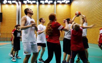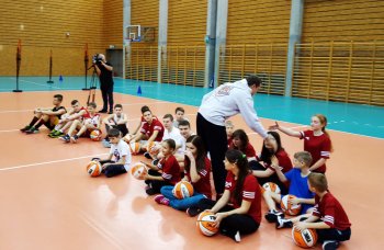 Hala widowiskowo-sportowa Ergo Arena w dniu dzisiejszym tętniła sportowym życiem. Na początku minister Witold Bańka poprowadził kilkunastominutową ogólnorozwojową rozgrzewkę dla zgromadzonej młodzieży. Następnie dzieciaki pod okiem trenerów koszykarskich z fundacji MG13 odbyły koszykarski trening wraz z testem sprawności koszykarskiej tzw. SKILLS CHALLENGE. Test składa się z toru przeszkód, na którym trzeba wykazać się wieloma umiejętnościami, również nabytymi wcześniej zdolnościami koszykarskimi: dwutakt, rzut do kosza i kozłowanie.