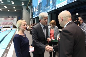 Podczas uroczystości minister Szuster odznaczył trójkę pracowników Warszawskiego Uniwersytetu Medycznego. Złotą Odznaką „Za Zasługi dla Sportu” otrzymał prof. Marek Krawczyk, rektor Warszawskiego Uniwersytetu Medycznego, zaś Srebrne Odznaki mgr inż. Wojciech Starzyński, zastępca Kanclerza WUM ds. Inwestycji oraz mgr inż. Ryszard Myszka kierownik Biura Inwestycji WUM.