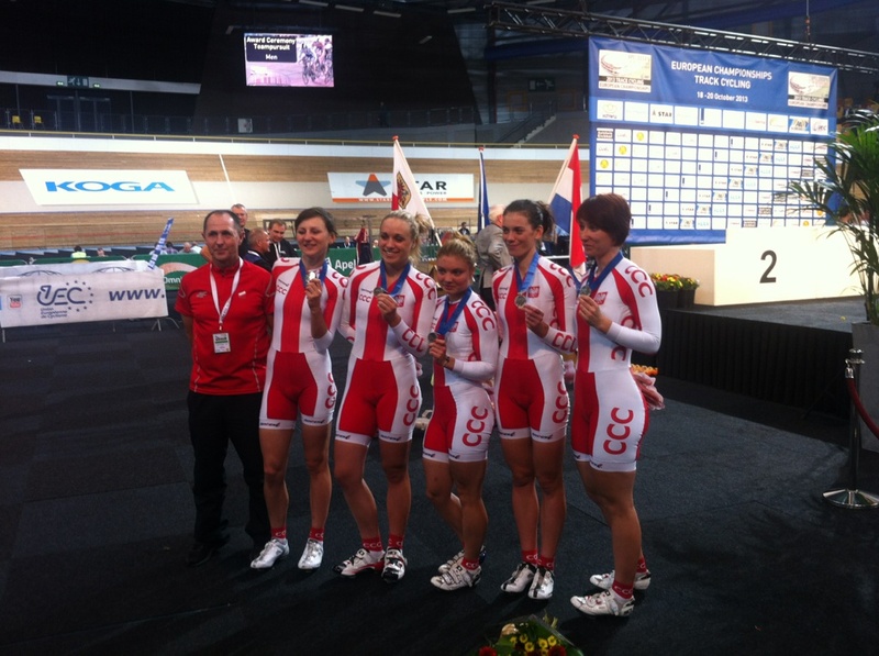 Eugenia Bujak i Natalia Rutkowska (Grupa Kolarska Żyrardów), Katarzyna Pawłowska (GSD Gestion Kallisto), Edyta Jasińska (MKS Emdek Bydgoszcz) i Małgorzata Wojtyra (BePink Team) w wyścigu na dochodzenie na 4000 m wywalczyły srebrny medal podczas Mistrzostw Europy w kolarstwie torowym, które odbyły się w dniach od 18 do 20 października w holenderskim Apeldoorn.