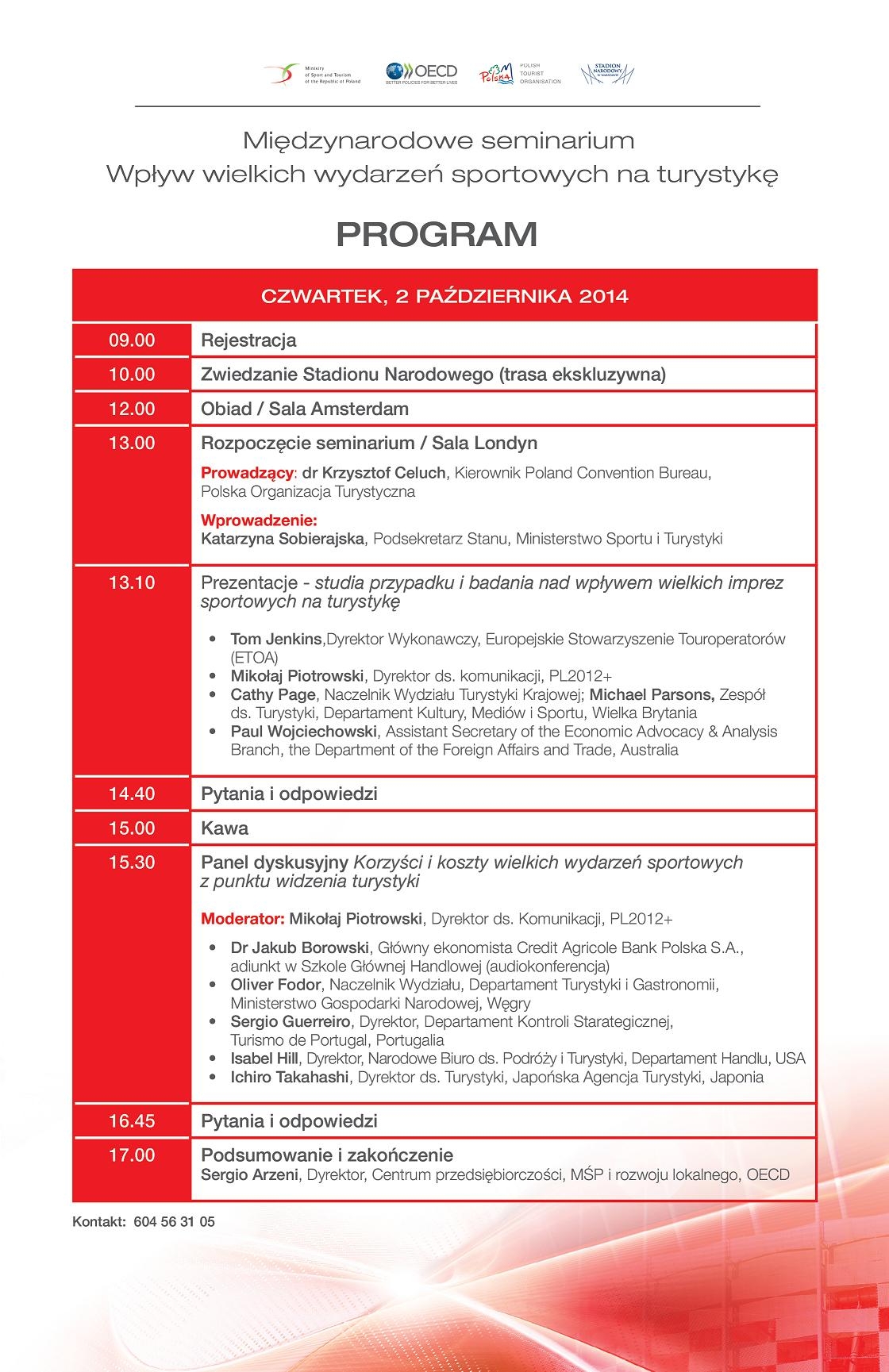 1-2 października 2014 na Stadionie Narodowym w Warszawie odbyło się 94. posiedzenie Komitetu Turystyki OECD z udziałem 90 delegatów z 39 państw. Spotkanie po raz pierwszy zorganizowano w Polsce, a uroczystego otwarcia Komitetu dokonał Minister Sportu i Turystyki Andrzej Biernat.