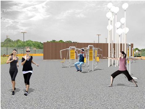 Przedmiotem II kategorii konkursu było wykonanie koncepcji architektonicznej ścieżki zdrowia obejmującej 12 urządzeń terenowych do ćwiczeń, wraz z propozycją ich umieszczenia w krajobrazie w pobliżu jednego z boisk programu funkcjonalno-użytkowego.