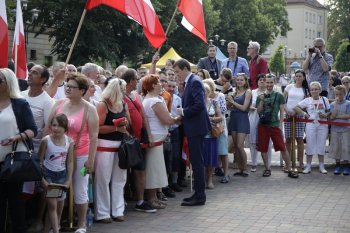 Następnym punktem wizyty były Tychy, gdzie prezydent Duda i minister Bańka spotkali się na placu Kamila Baczyńskiego z mieszkańcami miasta. Po krótkim przemówieniu prezydenta, tyszanie mieli okazję porozmawiać z gośćmi i zrobić sobie z nimi pamiątkowe zdjęcia.