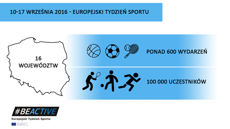 #BeActive to hasło Europejskiego Tygodnia Sportu. Inicjatywa współfinansowana jest ze środków Komisji Europejskiej. Projekt ma za zadanie zaangażować, uświadamiać i inspirować mieszkańców Europy do podejmowania aktywności fizycznej w codziennym życiu. W kilkunastu tysiącach wydarzeń, odbywających w ramach ETS, udział weźmie ponad milion mieszkańców Europy.