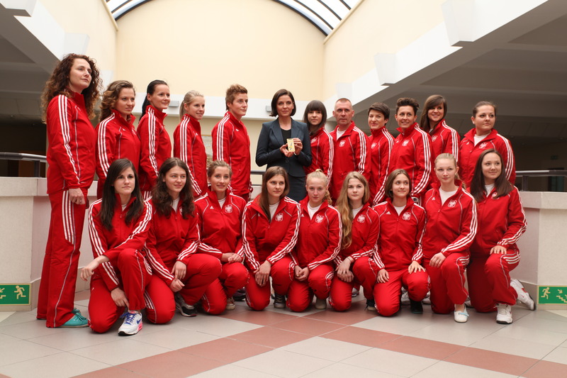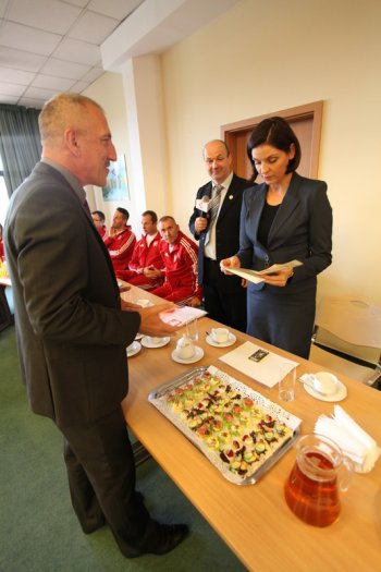 Minister Sportu i Turystyki otrzymała od zawodników pamiątkowy medal oraz koszulkę z podpisami wszystkich zebranych.