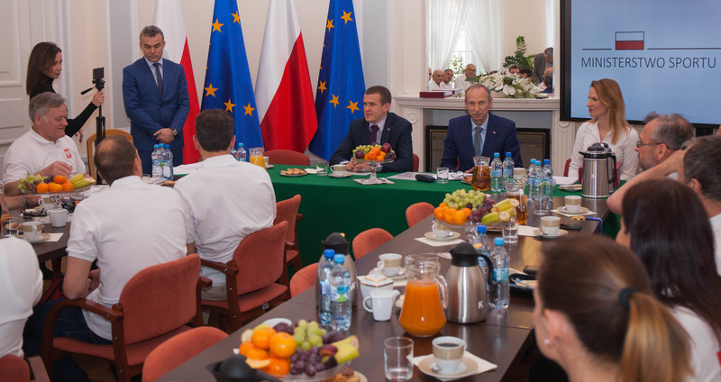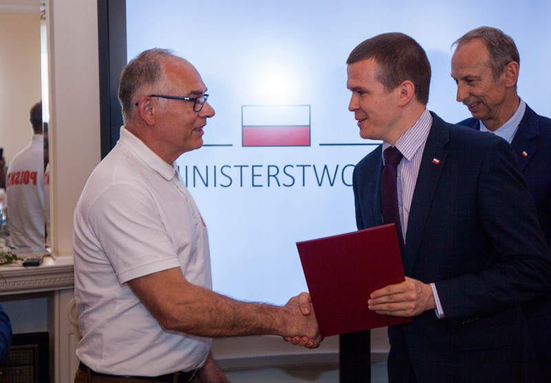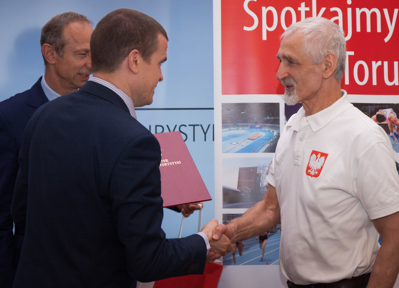 Podsekretarz Stanu Jan Widera przywitał gości i pogratulował zdobycia 61 medali przez polską reprezentację. - Bez wątpienia to kolejny sukces dla Polski, a także Polskiego Związku Weteranów Lekkiej Atletyki – podkreślił. - Ogromne podziękowania za wysiłek i wspaniałe wyniki. Chcę powiedzieć, że moment kiedy zawodnicy z orzełkiem na piersi reprezentują Polskę jest absolutnym powodem do dumy. Dziękuję za Państwa sportową postawę, która pokazuje, że sport nie ma barier, a Wy jesteście godni naśladowania przez młodych ludzi – powiedział minister Bańka. Zaznaczył, że lekkoatletyka jest najbardziej medalodajną konkurencją i jednocześnie fundamentem dla innych dyscyplin.