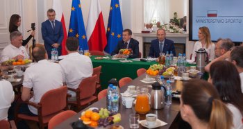 W środę 19 kwietnia br. w Ministerstwie Sportu i Turystyki odbyło się spotkanie z medalistami 7. Halowych Mistrzostw Świata Weteranów w Lekkiej Atletyce. W spotkaniu uczestniczył minister Witold Bańka, Podsekretarz Stanu Jan Widera, dyrektor Departamentu Sportu Wyczynowego MSiT Marcin Nowak oraz wiceprezydent European Master Athletics Jerzy Krauze.