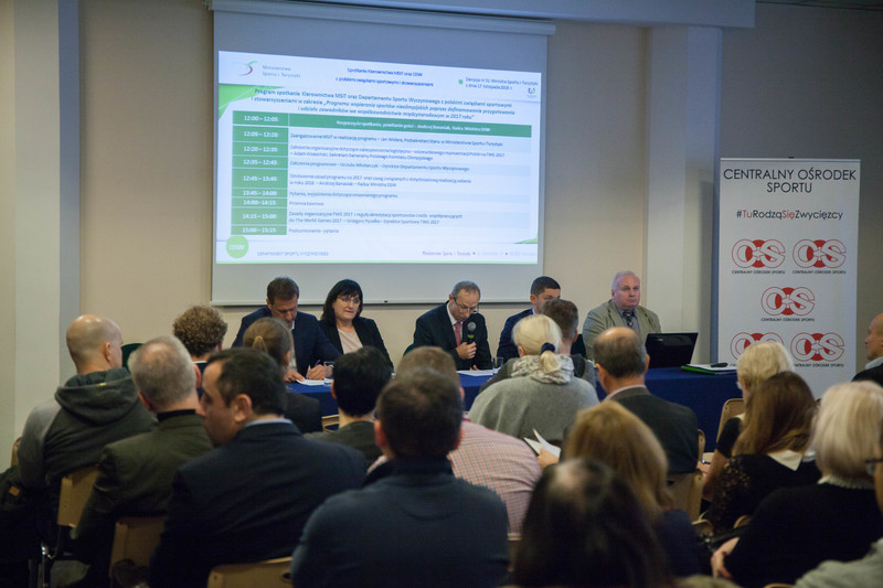 W poniedziałek 5 grudnia na Torwarze Podsekretarz Stanu w MSiT Jan Widera spotkał się z przedstawicielami polskich związków sportowych i stowarzyszeń w sprawie wspierania sportów nieolimpijskich. W spotkaniu udział wzięli również Adam Krzesiński, Sekretarz Generalny Polskiego Komitetu Olimpijskiego, Grzegorz Pyzałka, Dyrektor Sportowy The World Games 2017 oraz przedstawiciele Departamentu Sportu Wyczynowego MSiT,