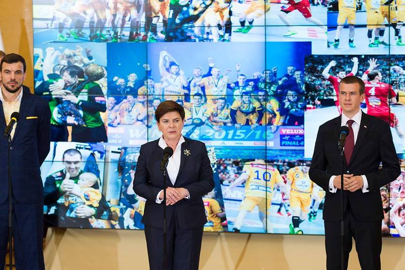 Dziś 31.05.2016r. w siedzibie Kancelarii Prezesa Rady Ministrów, Pani Premier Beata Szydło, Minister Sportu i Turystyki Witold Bańka oraz Sekretarz Stanu w MSiT Jarosław Stawiarski spotkali się ze zwycięzcami Ligi Mistrzów drużyną Vive Tauron Kielce.