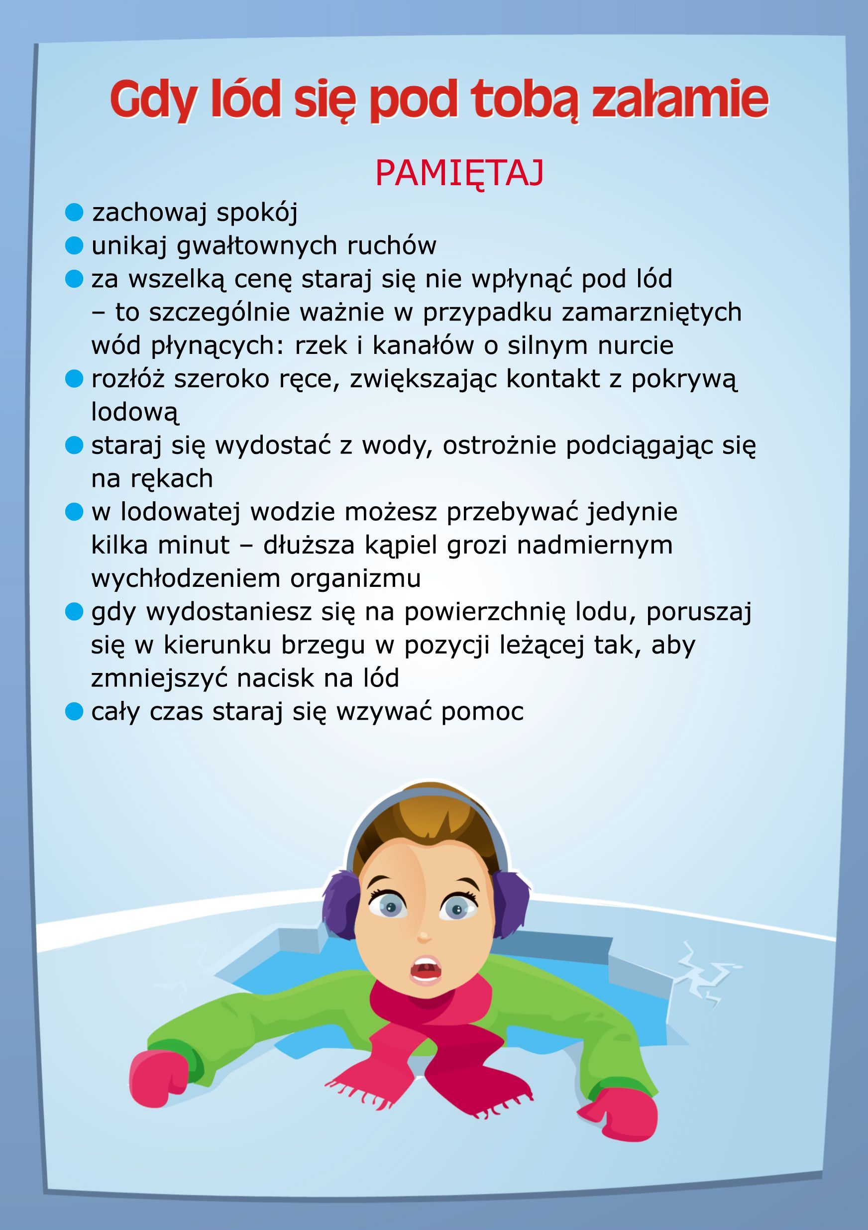 Powyższe materiały edukacyjno-informacyjne stanowią pomoc dydaktyczną w ramach zajęć szkolnych na temat zagrożeń związanych z przebywaniem na zamarzniętych rzekach, stawach i jeziorach.
