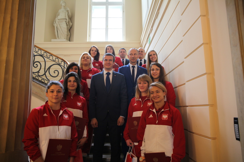 W piątek 26 maja br. w Ministerstwie Sportu i Turystyki odbyło się spotkanie z medalistkami Mistrzostw Europy w judo. W spotkaniu uczestniczył Minister Sportu i Turystyki Witold Bańka, Podsekretarz Stanu Jan Widera, zastępca dyrektora Departamentu Sportu Wyczynowego MSiT Anna Kuder, prezes Polskiego Związku Judo p. Jacek Zawadka oraz trenerzy: Jarosław Wołowicz i Marian Tałaj.