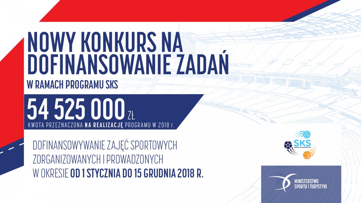 - Kwota w naborze 54 525 000 zł (ze środków Funduszu Rozwoju Kultury Fizycznej).