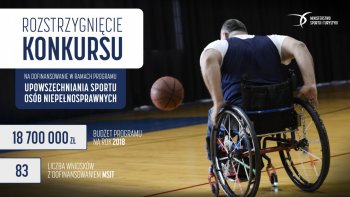 Zgodnie z decyzją Ministra Sportu i Turystyki z dnia 28 lutego 2018 r., zostały ogłoszone wyniki konkursu na dofinansowanie zadań w ramach Programu Upowszechniania Sportu Osób Niepełnosprawnych na rok 2018. Na ten cel przeznaczono kwotę 18 700 000 zł. Wśród złożonych ofert wyłoniono 83 podmioty, które otrzymają dotację finansową na realizację zadań.