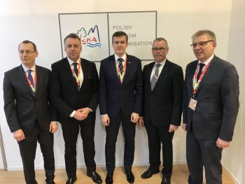 Minister Sportu i Turystyki Witold Bańka oraz Podsekretarz Stanu Dariusz Rogowski uczestniczyli w targach ITB Berlin 2018. To ważne wydarzenie dla przedstawicieli branży turystycznej i atrakcja dla tysięcy odwiedzających, na których czekały prezentacje 187 krajów i przegląd wszystkich gałęzi rynku turystycznego. Tegoroczna edycja odbyła się w dniach 7-11 marca. Podczas wizyty Minister Witold Bańka odwiedził Polskie Stoisko Narodowe i zapoznał się z ofertą wystawców.