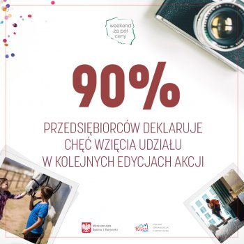 Sukces przedsięwzięcia widoczny jest również w deklaracjach partnerów i przedsiębiorców oferujących swoje usługi podczas akcji. Z przeprowadzonego przez Polską Organizację Turystyczną badania wynika, że aż 9 na 10 biorących udział w badaniu usługodawców potwierdza chęć wzięcia udziału w kolejnych edycjach akcji POLSKA ZOBACZ WIĘCEJ - WEEKEND ZA PÓŁ CENY, a zdecydowana większość (8 na 10) chce polecić udział w akcji innym podmiotom.