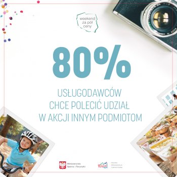 - Akcja POLSKA ZOBACZ WIĘCEJ – WEEKEND ZA PÓŁ CENY to w Polsce nowa, turystyczna tradycja. Zainteresowanie zarówno wśród przedsiębiorców jak i turystów rośnie z edycji na edycję. Ostatnia okazała się rekordowa, z czego niezwykle się cieszymy. Coraz bardziej doceniamy turystyczne walory Polski i to właśnie Polskę wybieramy na miejsce odpoczynku. Chcemy, aby Polacy korzystali z oferty turystycznej nie tylko w czasie wakacji czy ferii, stąd właśnie weekend za pół ceny organizujemy poza tradycyjnym sezonem turystycznym. Zainteresowanie akcją utwierdza nas w przekonaniu, że to projekt, który warto kontynuować - mówi minister sportu i turystyki Witold Bańka