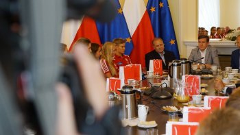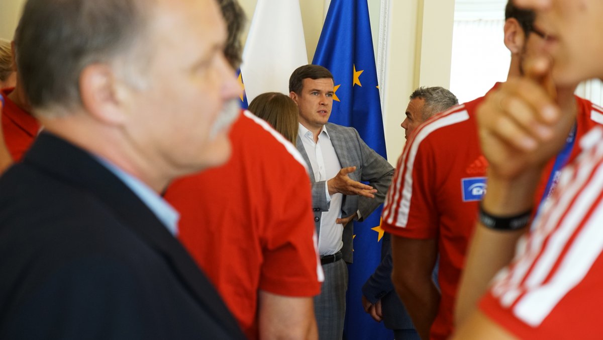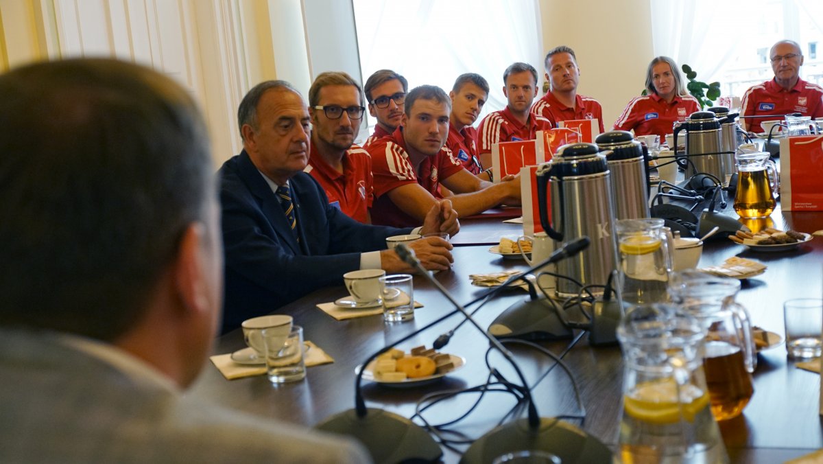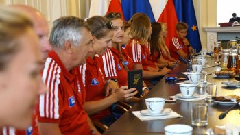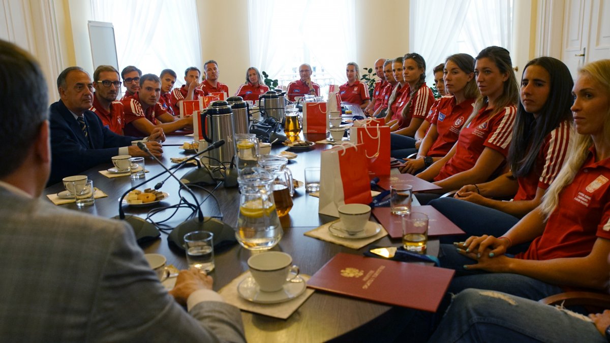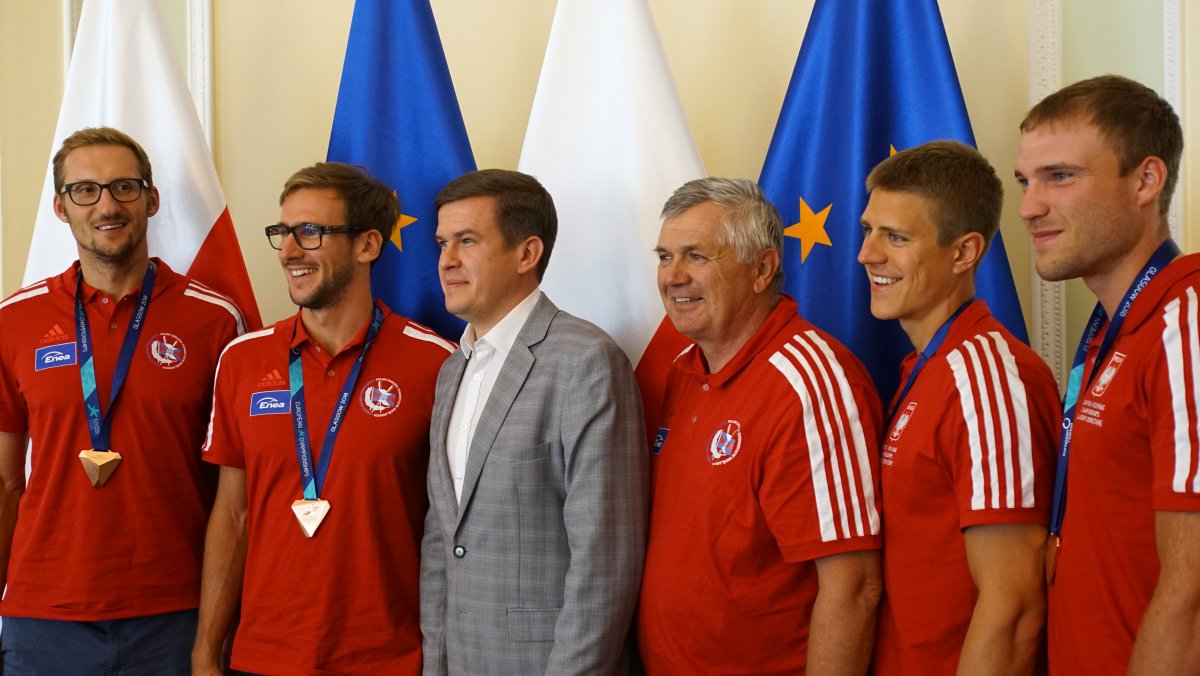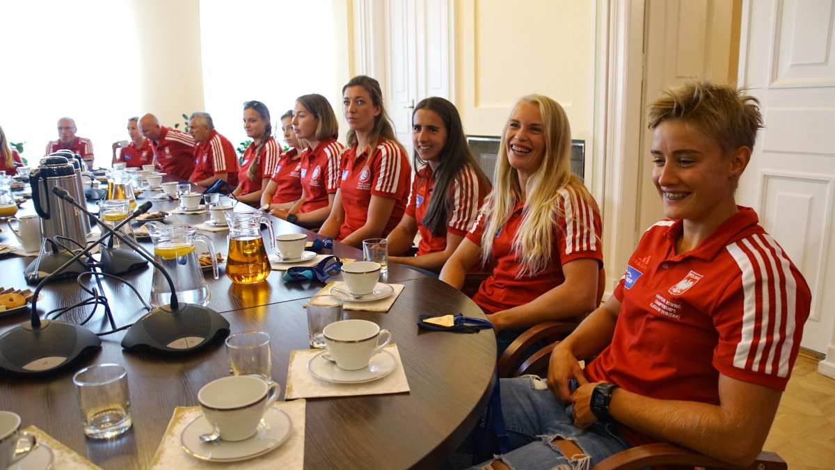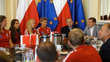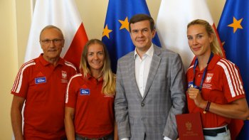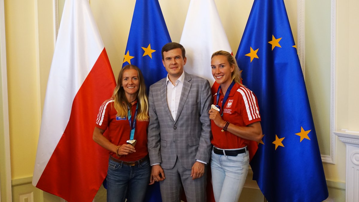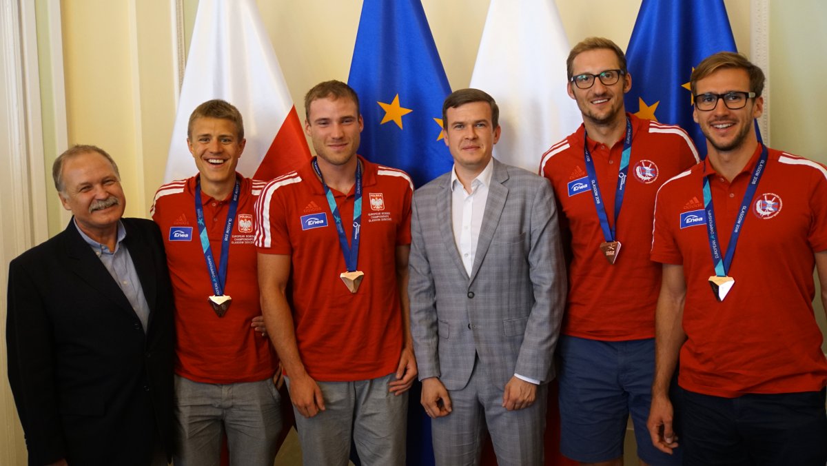 W poniedziałek 6 sierpnia br. w Ministerstwie Sportu i Turystyki odbyło się spotkanie z medalistami Mistrzostw Europy w wioślarstwie. W wydarzeniu uczestniczył Minister Sportu i Turystyki Witold Bańka, Podsekretarz Stanu w MSiT Jan Widera, Dyrektor Departamentu Sportu Wyczynowego MSiT Marcin Nowak, Wiceprezes ds. Organizacyjnych PZTW p. Jarosław Wolski oraz trenerzy: Aleksander Wojciechowski, Robert Sycz – trenerzy męskiej osady oraz Jakub Urban, Michał Kozłowski, Przemysław Abrahamczyk – trenerzy kobiecych osad.