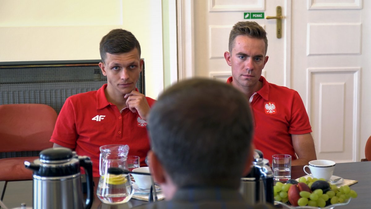 W czwartek 9 sierpnia br. w Ministerstwie Sportu i Turystyki odbyło się spotkanie z medalistami Mistrzostw Europy w Kolarstwie Torowym. W wydarzeniu uczestniczył Minister Sportu i Turystyki Witold Bańka, Podsekretarz Stanu w MSiT Jan Widera, Dyrektor Departamentu Sportu Wyczynowego MSiT Marcin Nowak, zawodnicy: Wojciech Pszczolarski i Szymon Krawczyk oraz trener Jacek Kasprzak.