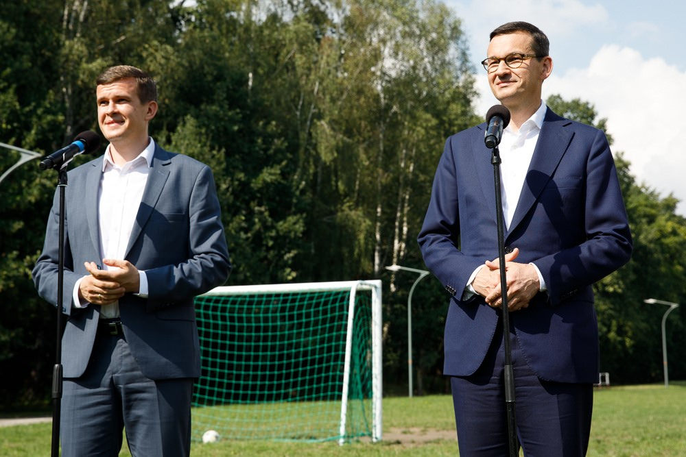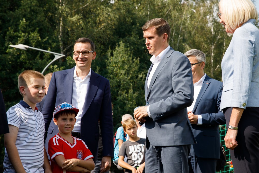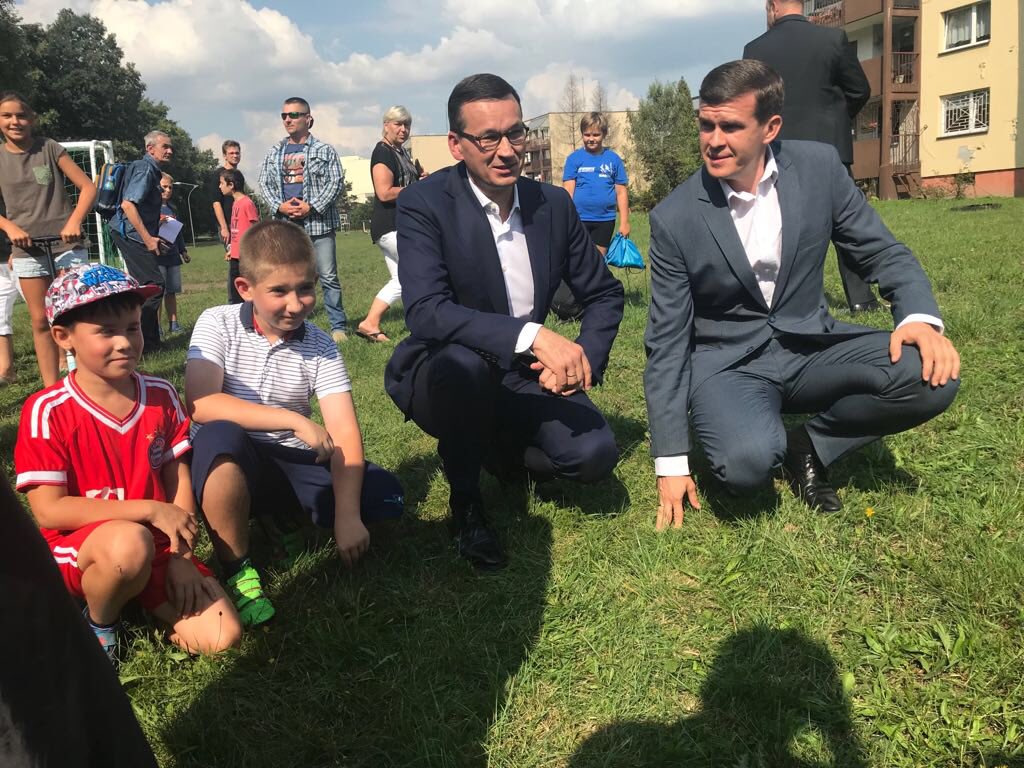 W Tychach odbyła się konferencja prasowa z udziałem Premiera RP Mateusza Morawieckiego oraz ministra Bańki. Szef rządu zapowiedział remont osiedlowego boiska, odpowiadając na apel młodych piłkarzy.