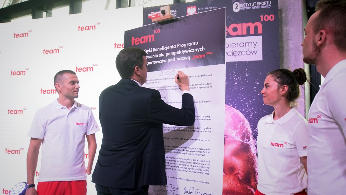 – Cieszy mnie, że mimo iż team100 jest nastawiony na przyszłość, to efekty w postaci międzynarodowych sukcesów zawodników do niego należących są widoczne już dziś. Program team100 jest niezwykle istotnym projektem z punktu widzenia strategii rozwoju polskiego sportu, zwłaszcza w kontekście igrzysk olimpijskich. Wspieramy młode talenty, uczymy odpowiedzialności i podejmowania właściwych decyzji. Myślimy o kształcie polskiego sportu w perspektywie długoterminowej. Jestem przekonany, że ten model dodatkowego wsparcia efektywnie przyczyni się do rozwoju młodego pokolenia mistrzów – mówi Minister Sportu i Turystyki Witold Bańka, pomysłodawca Programu.