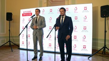 Konferencja prasowa z udziałem ministra Witolda Bańki oraz Prezesa PKPar Łukasza Szeligi