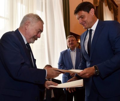 Podpisanie umowy na budowę hali w Krakowie.