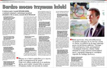 Padło również pytanie o najbardziej kontrowersyjną kwestię ostatnich dni, czyli doping i wykluczenia rosyjskich sportowców z Igrzysk Olimpijskich. - Sport musi być transparentny. Stosowanie dopingu przeczy zasadom fair-play. To są zachowania zasługujące na potępienie i co do tego nikt nie ma i nie powinien mieć wątpliwości. Na szczęście nie jestem prezydentem MKOl i nie muszę podejmować tych trudnych i - w przypadku być może niektórych zawodników - niesprawiedliwych decyzji. Jeśli zaś sugeruje Pan, że Polakom może być dzięki temu łatwiej, nie zgodzę się. Gdy kogoś brakuje na starcie, za moment na jego miejscu pojawia się ktoś inny, równie silny. To są igrzyska i tu każdy walczy o medal - zapewnił minister.