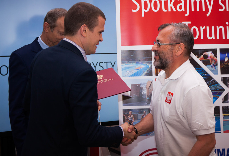 Podsekretarz Stanu Jan Widera przywitał gości i pogratulował zdobycia 61 medali przez polską reprezentację. - Bez wątpienia to kolejny sukces dla Polski, a także Polskiego Związku Weteranów Lekkiej Atletyki – podkreślił. - Ogromne podziękowania za wysiłek i wspaniałe wyniki. Chcę powiedzieć, że moment kiedy zawodnicy z orzełkiem na piersi reprezentują Polskę jest absolutnym powodem do dumy. Dziękuję za Państwa sportową postawę, która pokazuje, że sport nie ma barier, a Wy jesteście godni naśladowania przez młodych ludzi – powiedział minister Bańka. Zaznaczył, że lekkoatletyka jest najbardziej medalodajną konkurencją i jednocześnie fundamentem dla innych dyscyplin.