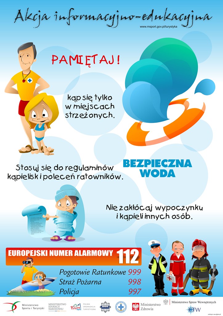 Ministerstwo Sportu i Turystyki realizuje akcję „Bezpieczna Woda” we współpracy z Wodnym Ochotniczym Pogotowiem Ratunkowym, Ministerstwem Edukacji Narodowej i Polską Organizacją Turystyczną, przy wsparciu Ministerstwa Zdrowia, Ministerstwa Spraw Wewnętrznych, Komendy Głównej Policji i Centrum Turystyki Wodnej PTTK.